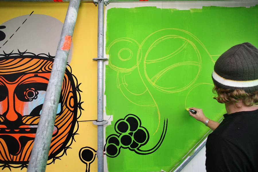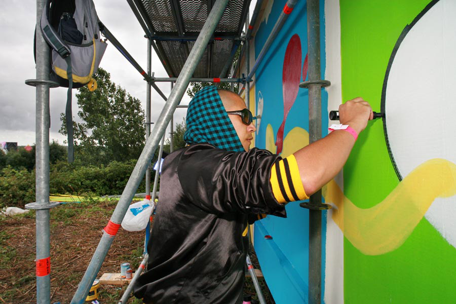 We created this robot stage and hosted it with our own event organisation: The Rendez Vous. We invited a lot of live painters, dj's and "De jeugd van tegenwoordig" playing live!