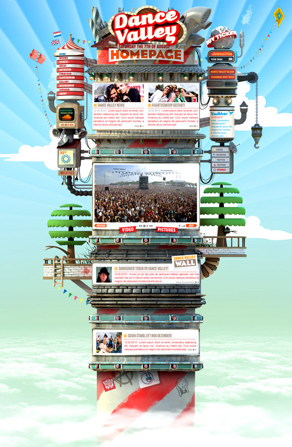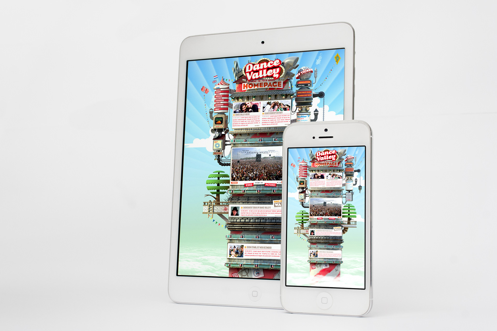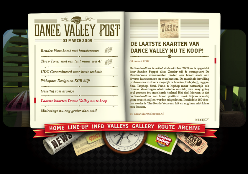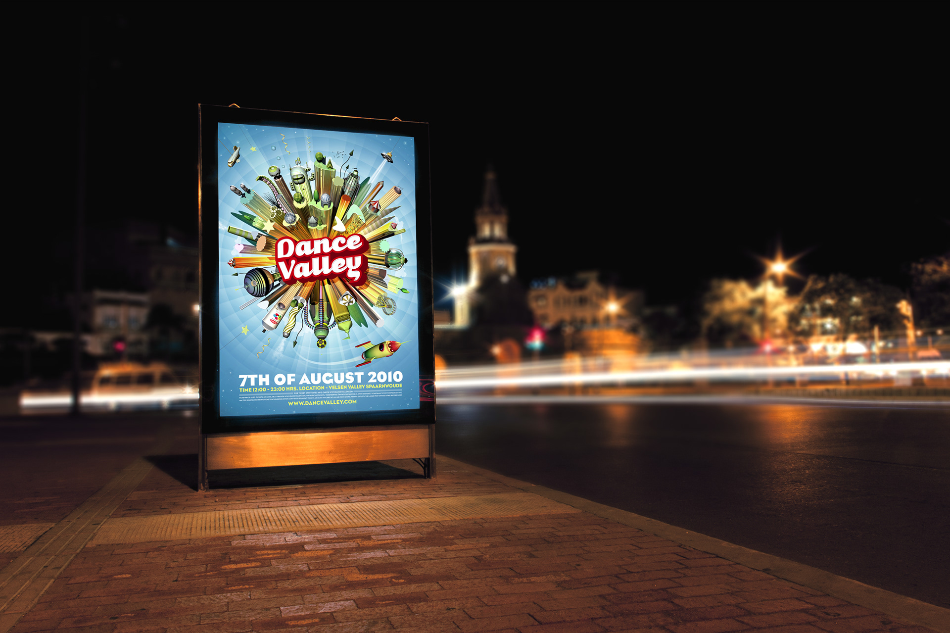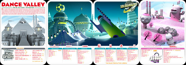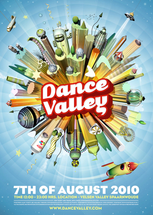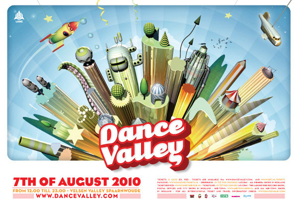 For two years in a row we created all the communications for Dance Valley festival (posters, Flyers & website). Besides that we also designed their Mainstage and did the VJ Show. (2009 & 2010)